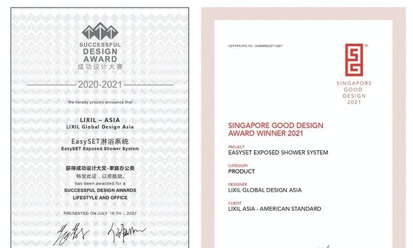 上海2021年8月9日 /新闻稿网 - Xinwengao.com/ — 近日,骊住集团旗下的百年卫浴品牌美标再传捷报,凭借其标志性产品 — 易舒喜挂墙式恒温淋浴系统,成功斩获两项国际设计大奖:2020-2021家庭办公类成功设计大奖(Successful Design Awards Lifestyle and Office)以及2021年新加坡好设计标志奖产品设计大奖(Singapore Good Design Award Winner 2021)。美标始终相信“好的质量是设计出来的”,因此着眼于每一个功能的精心设计,力求做到悦目、暖心、安全。此次接连囊获两项国际设计大奖,正是业界对美标设计力和创新力的充分肯定。
