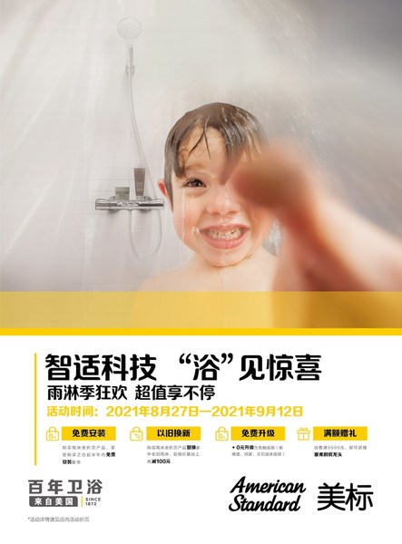 为了将优质设计作品带给更多的消费者,美标近期也倾力打造“雨淋狂欢季”,在炎炎夏日帮助消费者尽享畅快、舒适的沐浴体验。8月27日至9月12日活动期间,以易舒喜恒温淋浴系列、纤格入墙组合为代表的雨淋系列产品将以超值价格呈现夏日惊喜,配合精选座厕、台盆、浴室柜、镜柜等产品的倾情钜惠和多重贴心服务,助力夏日浴室焕新升级。未来,美标也将携“智适科技”品牌理念持续缔造卫浴新标准,以前瞻的设计理念和前沿的技术,为消费者打造功能和美观兼备的优质产品,将健康环保、优雅、美好的生活方式传播到世界各地。