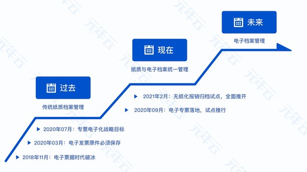 未来,归档趋势是电子化,会计凭证从纸质走向电子化的历程,说明电子化的趋势已经不可逆转,电子会计档案是电子会计凭证归档的最后一公里。