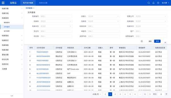 元年云电子会计档案管理系统,支持对接电子发票等上述各类型会计档案,全面满足国家规定与企业管理需求。