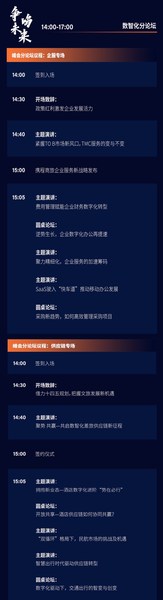 此次峰会的下午议程将同步设置两大分论坛,针对当前企业服务数智化、出行供应链完善化两大热议板块提供观点碰撞的场合。携程商旅与环球旅讯将一同遍邀行业领军人物共同与会,探讨数字化转型的路径,全景解析企服数智化、供应链发展的方向及逻辑,以全局视野和产业视角争鸣未来新模式。