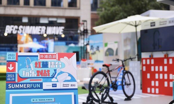 上海2021年8月23日 /新闻稿网 - Xinwengao.com/ — 当年轻遇上劲爽,当活力遇上健康,就碰撞出炎炎夏日里的最佳“红蓝”配色!8月22日至29日,骊住集团旗下百年卫浴品牌美标空降BFC上海外滩金融中心,配合BFC打造的外滩造浪季共同掀起了一场集玩乐、运动、打卡、亲子体验为一体的夏日狂欢。本次限定快闪活动以“红蓝擂台,玩乐对战”为主题,设置体能挑战赛、热带风情浴室打卡、夏日亲子互动、能量补给站等多重惊喜,为向往海浪沙滩、乐于挥洒汗水的年轻人打造一片城市中心的玩乐胜地,更将在周末限时开放亲子挑战赛,为沪上亲子家庭提供一个共享趣味互动和夏日美好时光的休闲去处。