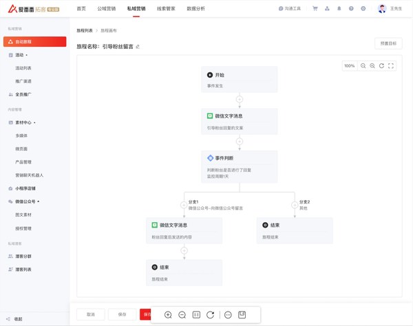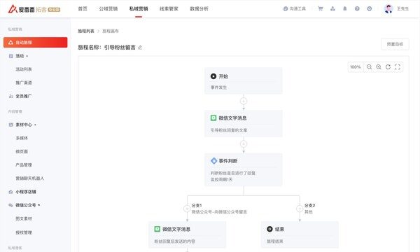 百度爱番番能够打通多种家居装修的营销渠道,实现渠道流量自动落潜,支持潜客身份、潜客标签、丰富潜客线索与营销玩法的统一管理。而自动化旅程则能够帮助企业管理全渠道活动,如快速生成直播物料等精准触达Z世代,自动化完成从公域流量池 – 私域流量池 – 线下门店(小程序)下单的路径。