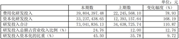 研发投入方面,财报显示,佳华科技在今年上半年的研发费用高达3980.44万元,在营收中占比24.76%,相较去年同期的12%大幅增长。