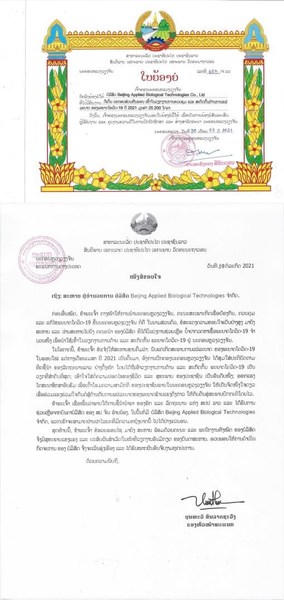 北京2021年8月25日 /新闻稿网 - Xinwengao.com/ — 日前,老挝首都万象市市长阿沙庞通·西潘敦向北京卓诚惠生生物科技股份有限公司颁发荣誉证书,表彰卓诚惠生向万象市捐赠新冠病毒核酸检测试剂,支持万象市2021年新冠肺炎疫情防控工作。同时,万象市外事厅副厅长代表万象市政府及市疫情防控委员会向卓诚惠生致信感谢。