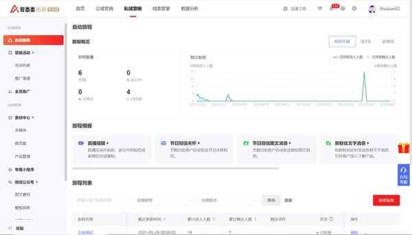 爱番番营销自动化旅程可以帮助美容服务业建立一套可以覆盖售前咨询、售中跟进、售后服务的全流程化服务体系,实现服务人工效率的提升及服务品质提升,增强用户体验感,刺激用户付费转化。