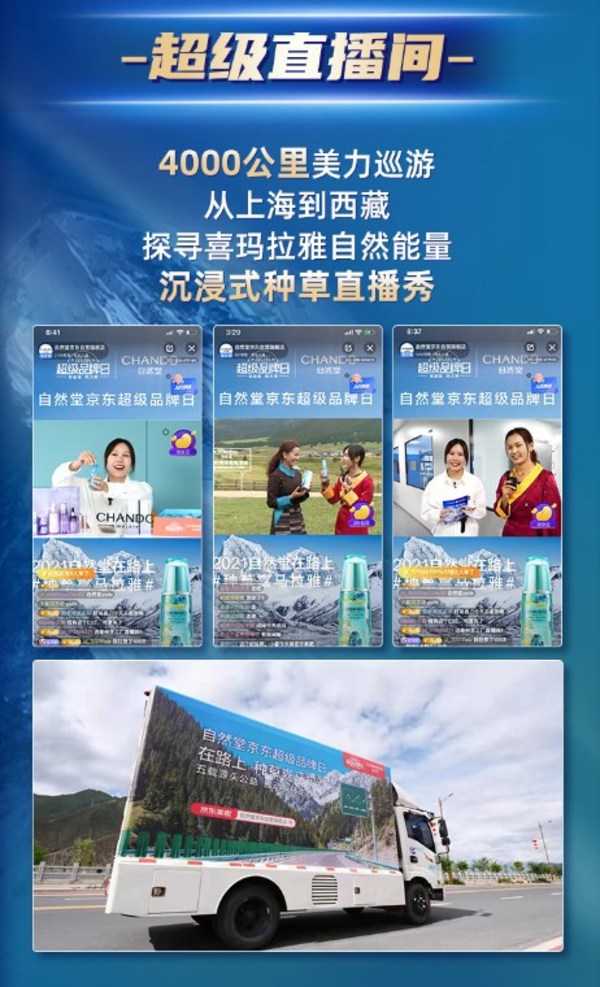 上海2021年9月1日 /新闻稿网 - Xinwengao.com/ — 自然堂20周年之际,首次携手京东平台第一IP — 京东超级品牌日,联合持续五年的自然堂种草喜马拉雅项目,满载希望向美而行,开启了今年的溯源之旅。自然堂邀请自然堂公益合伙人、人气明星翟潇闻为种草喜马拉雅公益助力,打造“4000公里美力巡游”三站沉浸式直播,更有明星大咖主播流量加持、人气藏族网红直播矩阵,带来喜马拉雅美力好物 — 自然堂唐卡非遗传人定制款冰肌水在京东首发。活动号召年轻消费者共同见证自然万物的美好生命力,助力种草公益,一起“美力生长”。自然堂斩获京东美妆当日成交NO.1,活动总曝光3.3亿,店铺销售同比增长1500%,粉丝增长82w,会员增长58w。 自然堂京东超级品牌日 4000公里美力巡游溯源直播 自然堂集结百家媒体明星大咖主播助力公益 自然堂以“在路上”为主题,携手京东超级品牌日发起从上海到西藏的“4000公里美力巡游”,在西藏鲁朗、林芝和终点站日喀则打造沉浸式溯源直播秀。自然堂成功创新三站式品牌自播间溯源直播秀、明星大咖直播间流量引爆、人气藏族网红直播联动、人民日报APP权威媒体直播助阵的跨平台直播矩阵。在鲁朗植物园直播中,主播带消费者了解了生长在喜马拉雅高原的珍稀植物,展现自然堂产品原料取自天然植物的自然主义品牌理念;而在林芝工厂的直播中,主播带消费者了解了自然堂品牌源头的数字化生产线以及品牌强大的科研实力。在27日爆发日当天,自然堂种草喜马拉雅见证仪式在日喀则举行,自然堂携手中华环境保护基金会和千万消费者历经五年的努力,在海拔4000米的公益草场上,播撒下“希望的种子”,将荒漠变为绿洲,刻下大写的“中国希望”和“中国意义”,除了在京东品牌自播间火热直播,还有人民日报app全程直播造势。当天,公益合伙人翟潇闻空降京东品牌直播间,不但分享了他初次参与种草公益的感受,还为消费者深度种草唐卡非遗传人定制款冰肌水,号召广大年轻消费者积极投入到种草公益中。 同时,自然堂深度合作明星和头部达人直播间,在曹颖、大利、娄艺潇、舒畅、涂磊等顶流主播直播间发力,收获喜人战绩,更有超40位人气藏族网红抖音直播造势, 实现全域氛围种草,引爆声量。自然堂唐卡非遗传人定制款冰肌水和自然堂冰川水水光面膜50片等爆款产品在直播间爆卖。整个活动自然堂最终斩获京东站内面膜、面霜、套装/礼盒等多个品类销量第一。 除了在直播矩阵上的突破,本次自然堂京东超级品牌日实现了站内外联动,多元玩法让消费者耳目一新。27日零点,京东站内上线“超级摇一摇”互动,助力种草喜马拉雅公益。自然堂还布局百家媒体矩阵以及KOL自媒体种草,以人群全覆盖的方式扩散传播声量。人民日报权威媒体、抖音、腾讯、百度、今日头条等百家主流媒体PR传播及开屏加持,强势引流京东站内,共同引爆自然堂京东超级品牌日活动站内外总曝光3.3亿。 自然堂京东超级品牌日直播 自然堂第五季种草喜马拉雅 溯源之旅不忘初心 8月27日,自然堂种草喜马拉雅公益一行来到了西藏日喀则,见证拉孜县100万平方米绿麦草的勃勃生机,共同助力喜马拉雅当地的生态环保,推动乡村生态振兴,并通过直播的形式,号召更多的人加入种草喜马拉雅公益行动,守护雪域高原生态环境。 在本次见证仪式中,中华环境保护基金会徐光理事长、中华环境保护基金会房志副秘书长、中华环境保护基金会李承峰主任;西藏自治区生态环境厅李雪副厅长、西藏日喀则市环保局颜世军副局长、西藏日喀则拉孜县委副书记、县长索旦、西藏日喀则市拉孜县委谭铭常务副书记、西藏日喀则市拉孜县委常委、政府副县长谈宁、西藏高原草业工程技术研究中心李勇生;雪堆白文化教育集团宋明董事长,伽蓝集团公关传播总经理陈涓玲博士,以及中新社、央广网、第一财经、新浪公益、公益时报的媒体共同来到现场,回顾此次溯源之旅的心路历程,见证种草公益项目对当地环境和乡村振兴的作用。 “这片古老而神奇的雪域高原,从黑暗走向光明,从落后走向进步,从贫穷走向富裕,从专制走向民主,从封建走向开放,创造了‘短短几十年,跨越上千年’的人间奇迹,发生了翻天覆地的巨大变化。这一切,得益于党的领导,得益于国家对西藏的特殊政策,得益于全国各省市的对口援建,得益于像中华环境保护基金会这样的国家5A级社会组织和像伽蓝集团这样的爱心企业和社会各界人士的关爱和奉献。”在见证仪式上,西藏自治区生态环境厅副厅长李雪对每一位为西藏稳定、发展、生态、强边四件大事给予的关怀和支持的社会各界人士表示衷心的感谢。 西藏日喀则拉孜县委副书记县长索旦表示,中央第六次西藏工作座谈会以来,党中央站在中华民族永续发展的战略高度,将西藏作为国家重要的生态安全屏障,把西藏生态文明建设摆在党和国家全局的突出位置,为西藏生态环境保护工作指明了前进方向,提供了根本遵循;而自然堂喜马拉雅环保公益基金在西藏开展的种草喜马拉雅公益活动,既体现了自然堂的生态环境保护意识,也彰显了自然堂企业的社会责任。 作为本次自然堂公益项目的跨界合作伙伴,雪堆白文化教育集团宋明董事长在见证仪式的活动现场被授予公益合伙人的称号。雪堆白从明代起就代表着西藏地区手工艺最高水平的机构,这次和自然堂合
