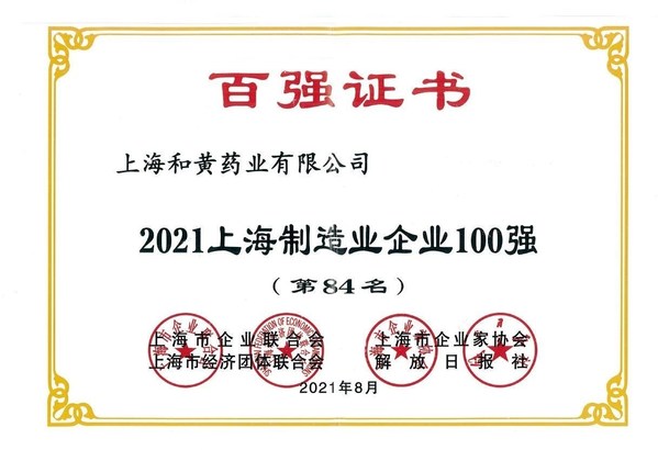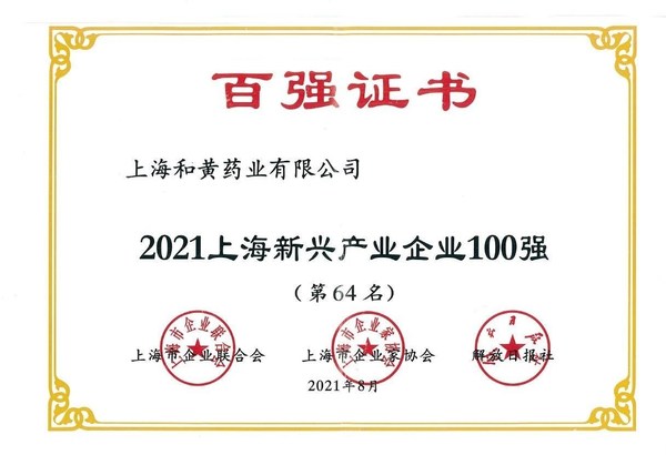上海2021年9月1日 /新闻稿网 - Xinwengao.com/ — 日前,由上海市企业联合会、上海市企业家协会和解放日报社主办的“2021上海百强企业发布会”在中国金融信息中心隆重召开。会上,上海企业100强、上海制造业企业100强、上海新兴产业企业100强等榜单正式发布。上海和黄药业凭借出色的发展业绩和持续创新,名列“2021上海制造业企业百强”和“2021上海新兴产业企业百强”。