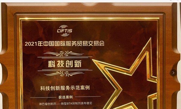 北京2021年9月5日 /新闻稿网 - Xinwengao.com/ — 9月4日下午,2021年中国国际服务贸易交易会(以下简称服贸会)示范案例颁奖典礼在北京国家会议中心举行。经过专家认真评审,诺诚健华自主研发的新型BTK抑制剂奥布替尼被授予2021年中国国际服务贸易交易会“科技创新服务示范案例”奖。