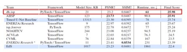 杭州2021年9月6日 /新闻稿网 - Xinwengao.com/ — 近日,由CVPR主办的MAI(Mobile AI Workshop)分会近期在线上举行。作为图像领域最具影响力的赛事之一,本届MAI 2021挑战赛由华为、OPPO、MTK、SAMSUNG、苏黎世理工共同主办。参赛队伍聚集了华为、百度、商汤、Horizon等国内外顶尖AI团队。大华股份图像算法部dh_isp团队提出的轻量化网络一举摘得ISP赛道冠军,充分展示了大华在图像增强领域的开拓创新的实力。