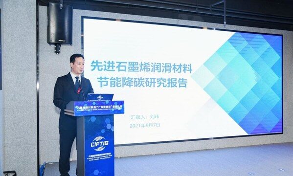 论坛上,中润超油(北京)科技发展有限公司向全球首发《先进石墨烯润滑材料节能降碳研究报告》,展示了“华墨”石墨烯润滑材料在风电、建材、工程机械、交通运输等领域的节能降碳实际验证数据。众多实际使用数据表明,华墨石墨烯润滑油除符合目前高端润滑油全部标准外,还具有极压抗磨、易散热、自修复、节能降碳等独特功能。根据2020年公开数据统计,如果全国家庭轿车、客运、货运、矿山卡车、工程施工机械全部使用华墨石墨烯润滑材料,则每年可节省4000万吨燃油,减少碳排放1.6亿吨,相当于75个300兆瓦火力发电站一年碳排放总量,而若利用这些减碳排指标可发2000亿度电,能满足3亿人口一年用电需求。