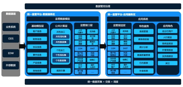 为了帮助银行能一站式快速、准确的向各监管机构报送数据、高效积极的响应监管要求,中电金信在把握目前监管趋势及银行的现状与需求基础上,整合了监管机构的报送制度规范,综合利用大数据等技术开展了统一监管合规平台系统的研发和实施工作,形成了统一的监管架构、数据模型、数据检核、监管知识库和监管报送平台,该平台包含任务管理、数据填报、数据复核、数据退回、数据查询、历史记录、指标分析、报文生成、模板配置、规则定义等十大功能,以满足不同的监管部门对不同业务的监管要求,实现各类监管报送的统一登录、统一整合、统一指标、统一展现、统一管理。