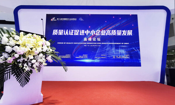 广州2021年9月16日 /新闻稿网 - Xinwengao.com/ –9月16日,第十七届中国国际中小企业博览会(简称“中博会”)在广州正式开幕,“质量认证促进中小企业高质量发展高峰论坛”同期进行。本次论坛是经国务院批准,由国家市场监督管理总局以及国家认证认可监督管理委员会主办。
