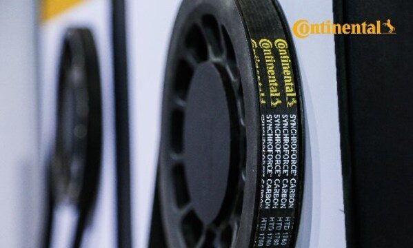 Conti Synchroforce Carbon系列超强型传动带,适用于高加速力和高冲击负载,主要应用于250-400 cc排量的燃油摩托和大功率电动摩托车。该系列传动带使用玻璃和碳纤维混合芯线,并采用抗剪切力极强的合成橡胶带体,以及覆有特殊耐磨层的齿面包布,在提供优异抗拉性能的同时,能够确保传动带在恶劣环境下的可靠表现,可耐受温度更达到-30到+130摄氏度 。