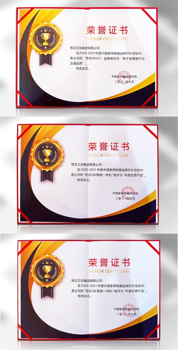 在2021中国家用电器创新成果发布盛典荣获三项殊荣,是对恒洁创新理念与技术的高度认可。未来,恒洁将继续以创新为驱动,坚持长期主义和产品主义,为消费者打造更高品质的卫浴生活。