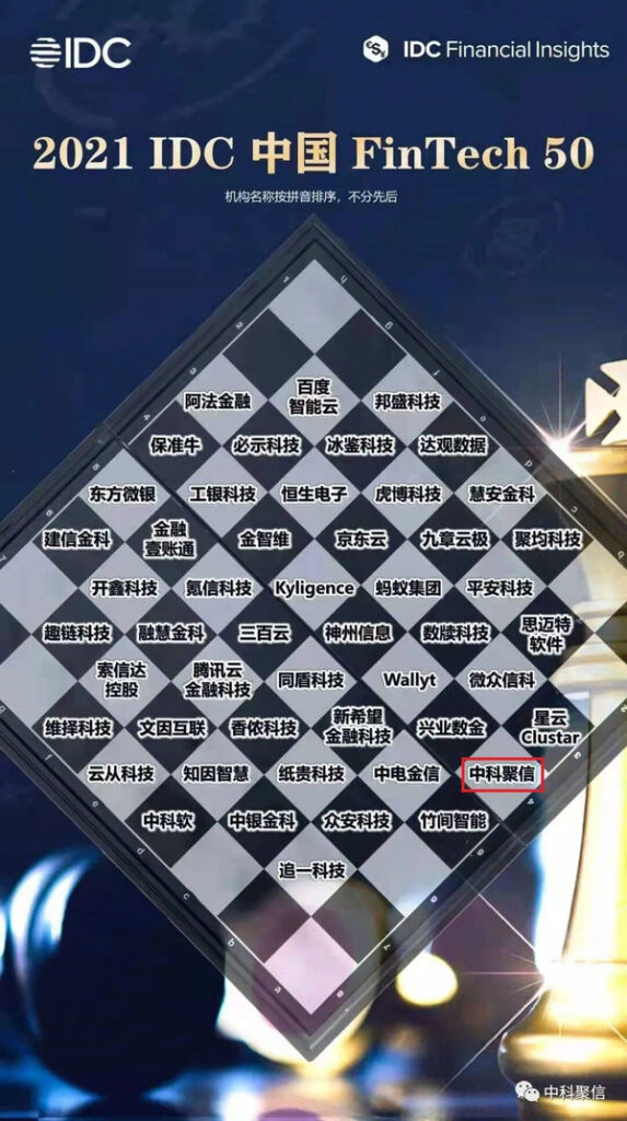 北京2021年9月19日 /新闻稿网 - Xinwengao.com/ — 2021年9月17日,国际数据公司IDC(International Data Corporation)举办了“2021 IDC中国数字金融论坛”,并公布了2021年中国金融行业技术应用场景创新奖获奖名单及2021 IDC中国FinTech 50榜单。中科聚信(SCAI)同蚂蚁集团、平安科技、腾讯云、京东云、百度智能云等一同上榜,这也是中科聚信(SCAI)再次荣获此项殊荣,同时中科聚信(SCAI)联合青岛农商行合作项目也获评2021中国仅有的四个“金融行业应用场景创新突破奖”之一。