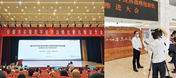 北京2021年9月24日 /新闻稿网 - Xinwengao.com/ — 9月17日,贵州省安顺市召开“实施数字经济战略抢新机推进大会”,安顺市委书记陈少荣出席大会并讲话,市委副书记、市长宋晓路主持大会。亚信科技执行董事、首席执行官高念书,高级副总裁陈武,副总裁李跃宏等受邀出席。会议期间,安顺市人民政府与亚信科技达成战略合作,相约在智慧城市建设、数据运营、产业数字化等方面深入合作。在陈少荣、高念书、陈武等见证下,安顺市副市长杨平与亚信科技副总裁李跃宏等签署协议。