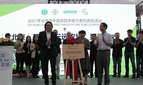 北京2021年9月24日 /新闻稿网 - Xinwengao.com/ — 金穗卷起千层浪,又是一年丰收时。9月24日上午,2021年北京市中国农民丰收节系列庆祝活动暨拜耳耘远农场揭牌仪式在北京银黄绿色农业生态园顺利举行。北京市农业农村局肖勇处长、北京市植物保护站张加勇站长、昌平区农业农村局李国荣副局长、拜耳作物科学大中华区总经理Alfonso Alba以及银黄农业生态园总经理秦爱腾女士等嘉宾出席了仪式,并共同见证了亚太首个拜耳“耘远农场”揭牌成立。