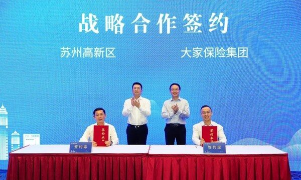 北京2021年9月26日 /新闻稿网 - Xinwengao.com/ — 9月24日,大家保险集团与江苏省苏州市高新区战略合作签约仪式在苏州举行。大家保险集团董事长何肖锋与苏州市高新区党工委书记、虎丘区委书记毛伟出席并见证签约仪式,大家保险集团总经理助理、大家健投总经理汤宁与高新区党工委副书记、虎丘区委副书记、政法委书记陆振华代表双方签署协议。仪式现场还举行了合作项目签约,发布了“苏州双子金融广场”项目概念性方案。