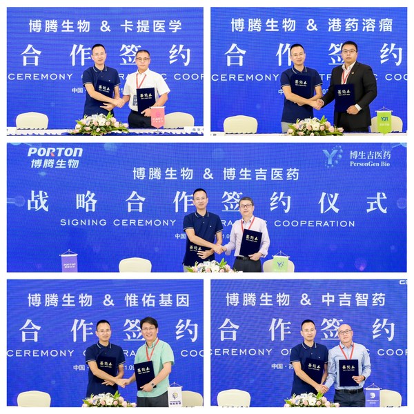 苏州2021年9月29日 /新闻稿网 - Xinwengao.com/ — 9月26日,“博腾生物战略客户集中签约仪式”盛大举行。博生吉医药科技(苏州)有限公司、港药溶瘤生物制药有限公司、南京卡提医学科技有限公司、苏州惟佑基因生物科技有限公司、中吉智药(南京)生物技术有限公司五家基因与细胞治疗领域的优秀企业与博腾生物签署战略合作,珠联璧合、强强联手,共筑基因与细胞治疗产业未来。