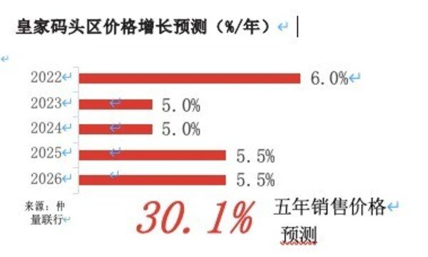 全球领先的房地产服务机构仲量联行预计,在截至2026年底的五年时间里,皇家码头区的房价将上涨30%。