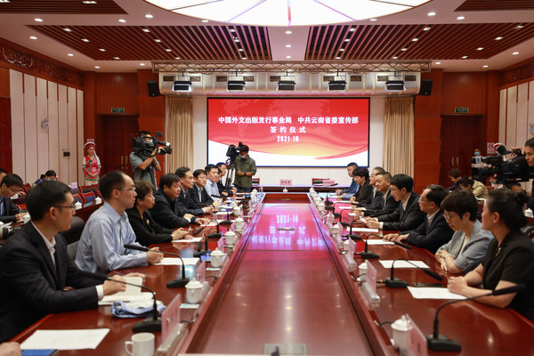 北京2021年10月9日 /新闻稿网 - Xinwengao.com/ — 以下为来自中国网的报道: 10月9日,中国外文局与云南省委宣传部战略合作签约仪式在云南省大理州举行。中国外文局局长杜占元,云南省委常委、宣传部部长赵金出席仪式并致辞。中国外文局副局长陆彩荣,中国外文局副总编辑陈实,云南省委宣传部副部长、省政府新闻办主任彭斌,云南省委宣传部一级巡视员田虎青及双方有关负责同志出席。 签约仪式现场 中国外文局与云南省委宣传部签署战略合作协议 杜占元在致辞中表示,中国外文局是承担党和国家对外宣介任务的国际传播机构,中央明确要求中国外文局加强与中央部委、地方、行业、高等学校和研究机构、企业等的国际传播协作。值此《生物多样性公约》缔约方大会第十五次会议开幕之际,中国外文局与云南省委宣传部签订战略合作协议,是共同讲好云南故事、中国故事的有力抓手,为央地之间开展国际传播合作树立了标杆。希望双方以此次战略合作为契机,策划实施更多创新性国际传播项目,搭建更宽广的国际传播平台,推出更多国际传播精品和品牌,为助力云南高质量发展和展示真实立体全面的中国作出更大贡献。 中国外文局局长杜占元致辞 赵金在致辞中表示,长期以来,云南与中国外文局始终保持良好合作关系,双方在国际传播合作方面取得了明显成效。云南将以此次战略合作协议签署为新起点,充分发挥区位优势,围绕建设面向南亚东南亚辐射中心,深化双方务实合作,全面加强国际传播能力建设,在讲好美丽中国七彩云南故事上发挥积极作用。 云南省委常委、宣传部部长赵金致辞 随后,陆彩荣与彭斌分别在协议书上签字,标志着双方合作进入深度融合、协作共赢的新阶段。根据协议,双方将在国际传播、文化交流、南亚东南亚区域国际传播中心建设、舆情研究等方面不断深化务实合作,谱写好中国梦的云南篇章。同时充分利用云南独特的区位优势和丰富的外宣资源,提升中国外文局服务国家重大战略的综合实力和水平。 中国外文局与云南省委宣传部签署战略合作协议 打造协同协作新典范http://news.china.com.cn/txt/2021-10/09/content_77798144.htm