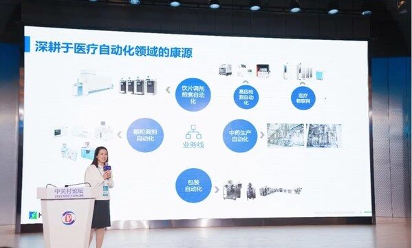 9月28日,在新技术新产品首发与推介大会上,和利康源市场品牌中心总经理张秋菊女士重点介绍了“MD6120N中药配方颗粒调剂系统”,该系统完全由和利康源自主研发,以自动化技术为支撑,将传统中医药的优势、特色与现代科技相结合,采用袋式无交叉污染落药、自动插拔瓶、药品自动识别、称重、复核,自动制袋、自动封装等功能,单次最多可调剂28袋,让颗粒配药更安全、更科学、更高效、更精准,为中药配方颗粒的市场应用和推广提供了完整的解决方案。该系统涵盖中药配方颗粒的储运,处方管理,自动调剂,药品封装,设备管理等各个环节,提升医院中药房的运营效率和智能化、信息化水平,解决了中药配方颗粒无法人工调剂、用药安全、药房环境差、追溯等问题。客户包括众多百强药企等行业龙头企业,产品最终用户包括北京东直门中医院、浙江省中医院等超过10000家国内医疗机构,保证了中药配方颗粒在临床使用的“安全、精准、便捷、可控”。