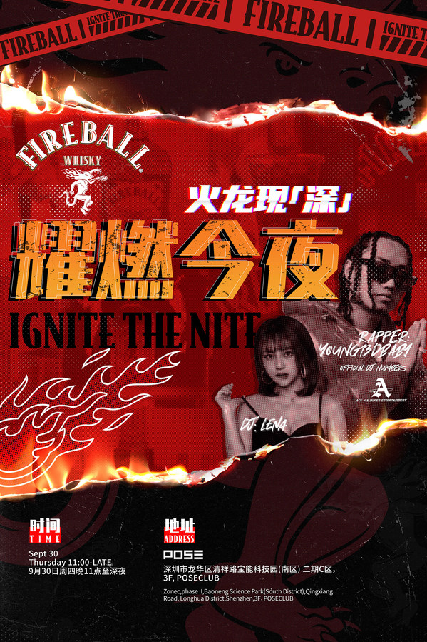 深圳2021年10月10日 /新闻稿网 - Xinwengao.com/ — (2021年9月30日,深圳)国庆长假前夜,火龙Fireball在深圳POSE以一场主题为“耀燃今夜”的燃炸派对,给了这座城市新的夜娱模式。