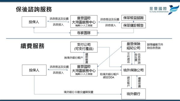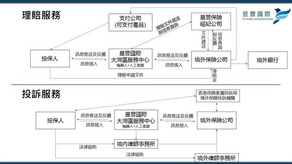 昱丰国际紧跟国内大湾区政策,目前主力发展方向力争打通个人或者机构与境外保险公司和保险经纪公司信息查询,支付请求,理赔校验,投诉咨询的服务环节,建立在线上+线下可触及沟通平台,希望打造成为跨境“保险通”实施的可行落地示范服务单位。