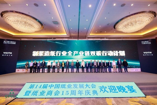 – 第十四届中国纸业发展大会在上海顺利召开,福伊特独家赞助欢迎晚宴。 – 福伊特造纸亚洲区总裁喻致兵与纸业商会领导同仁联合签署“中国制浆造纸行业全产业链双碳行动计划”。 – 福伊特发表《低碳造纸,福泽未来》演讲,致力于纸业创新和可持续发展。 江苏昆山2021年10月13日 /新闻稿网 - Xinwengao.com/ — 2021年10月12日-13日,第十四届中国纸业发展大会在上海顺利召开。盛会首日,全球造纸技术领军企业福伊特,再次与纸业商会携手,独家赞助了欢迎晚宴。晚宴主题“持续有道,福泽未来”,源自福伊特融入血脉的基因,更是福伊特与中国造纸业的共同心志。盛筵连心,志同道合。 晚宴上,福伊特造纸领导层集体出席,通过“百年传承”、“以纸代塑”、“技术创新”、“低碳之路”四个晚宴章节,描绘了福伊特始终追求的愿景 — 纸,让世界更美好。 从左至右:福伊特造纸产品与服务中国区副总裁顾吉平,福伊特造纸亚洲区总裁喻致兵,福伊特造纸织物辊子系统中国区高级副总裁程波,福伊特造纸亚洲区项目销售和应用副总裁赵海。 福伊特造纸亚洲区总裁喻致兵为纸业商会赠送15周年礼物:2006年7月6日首届纸业商会会员大会现场合影的剪纸艺术品 2021年,全球碳中和进程加快,中国“双碳”目标与路径日益清晰,环保理念深入人心。晚宴上,福伊特造纸亚洲区总裁喻致兵先生与纸业商会领导和企业同仁联合签署“中国制浆造纸行业全产业链双碳行动计划”,一场行业绿色变革就此拉开序幕,福伊特身处变局,无畏挑战。 中国造纸行业全产业链双碳行动计划启动仪式 10月13日,大会举办主题为“双碳与双减,远虑和近忧”行业论坛。福伊特造纸亚洲区销售副总裁赵海应邀出席,发表题为《低碳造纸,福泽未来》演讲。赵海表示:造纸行业可通过低碳技术、淡水节约、循环经济、和以纸代塑四个重点领域来实现低碳绿色造纸转型。 能源及CO₂管理软件,通过OnEfficiency、OnView软件实现能源及CO₂足迹可视化; AquaLine水管理系统,吨清水消耗量降至1.5立方; 造纸4.0数字化应用,通过DigitalEye应用监测回收纸进料,优化成本、质量及工艺; 以纸代塑,研发可降解的防水防油涂层,推动隔离应用技术发展。 “双碳”目标,是中国对世界的庄严承诺,更是华夏文明对人类未来的睿智承担。2011年以来,福伊特已经成功减少28%的能耗、27%的废弃物、以及27%的淡水消耗。福伊特的目标是:到2022年,在全球工厂实现“碳中和”。 传承延绵,突破创新,福伊特纸系未来,绿意承续。