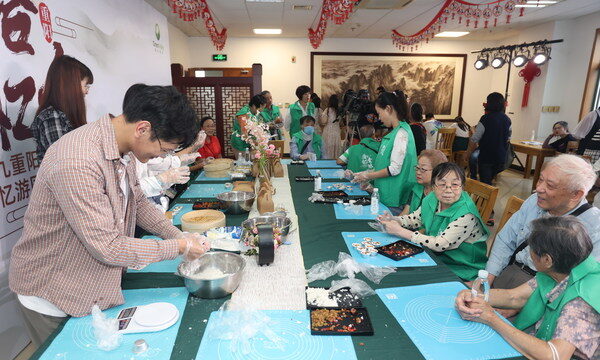 上海2021年10月14日 /新闻稿网 - Xinwengao.com/ — 老人与年轻人两两搭档,在糕点师手把手的指导下,一起亲手制作一份温情满满的重阳糕,在一片欢声笑语的氛围中,这里的重阳节显得有些不一样。