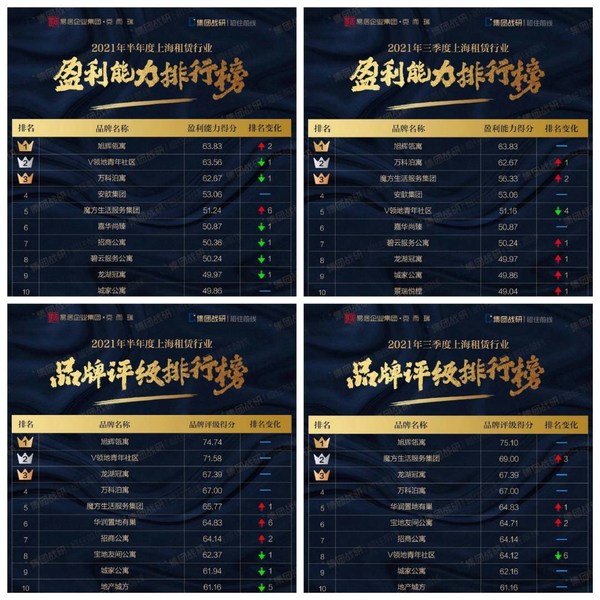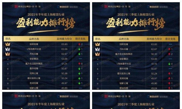 上海2021年10月15日 /新闻稿网 - Xinwengao.com/ — 10月9日,克而瑞发布了《2021年第三季度上海租赁排行榜》,其中旭辉瓴寓斩获盈利能力及品牌评级双第一,连续三季度蝉联该排行榜双冠。