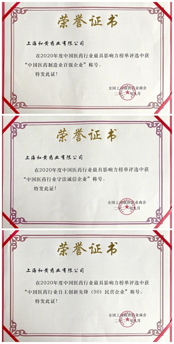上海2021年10月21日 /新闻稿网 - Xinwengao.com/ — 日前,由全国工商联医药业商会主办的“首届泰山医药论坛暨2020年度中国医药行业最具影响力榜单发布会”在济南成功举办。上海和黄药业一举获得2020年度“中国医药制造业百强企业”、“中国医药行业守法诚信企业”和“中国医药行业自主创新先锋(50)民营企业”三项荣誉称号。 本次会议集结了来自全国各地的行业专家和企业管理者800余位,以医药行业“全产业·大平台·深融合·共发展”为主题,围绕行业所面临的宏观形势、热点问题、市场格局变化等进行主题研讨、圆桌对话和巅峰论道,构建行业全产业链融合发展体系;同时发布“2020年度中国医药行业最具影响力榜单”,举行颁奖盛典。 作为上海首家中药合资企业,和黄药业在20年的发展征程中,以科技创新为导向,聚焦产品临床价值,守正笃行,合规经营。公司在对传统经典中药产品的再创新研究中取得重大突破,特别是对国家中药保密品种麝香保心丸的现代科学研究取得了显著成绩,分别进行了化学物质组学、系统生物学、网络药理学、循证医学等现代创新研究,已累计发表论文2800多篇,其中80多篇被收录于SCI目录中。2019年,麝香保心丸现代化研究成果荣获“国家科技进步二等奖”。2021年,麝香保心丸MUST循证医学研究结果正式发布。公司另一重点产品胆宁片分别于2016年和2019年获得加拿大天然药品上市许可证和加拿大境外生产场地认证,成为中药国际化的成功典范之一。 今后,上海和黄药业将继续载誉前行,秉承“创新传统中药,服务健康中国”的宗旨,坚定不移地走高质量、大品牌发展道路,为社会提供具有卓越临床价值的药品,服务健康中国。