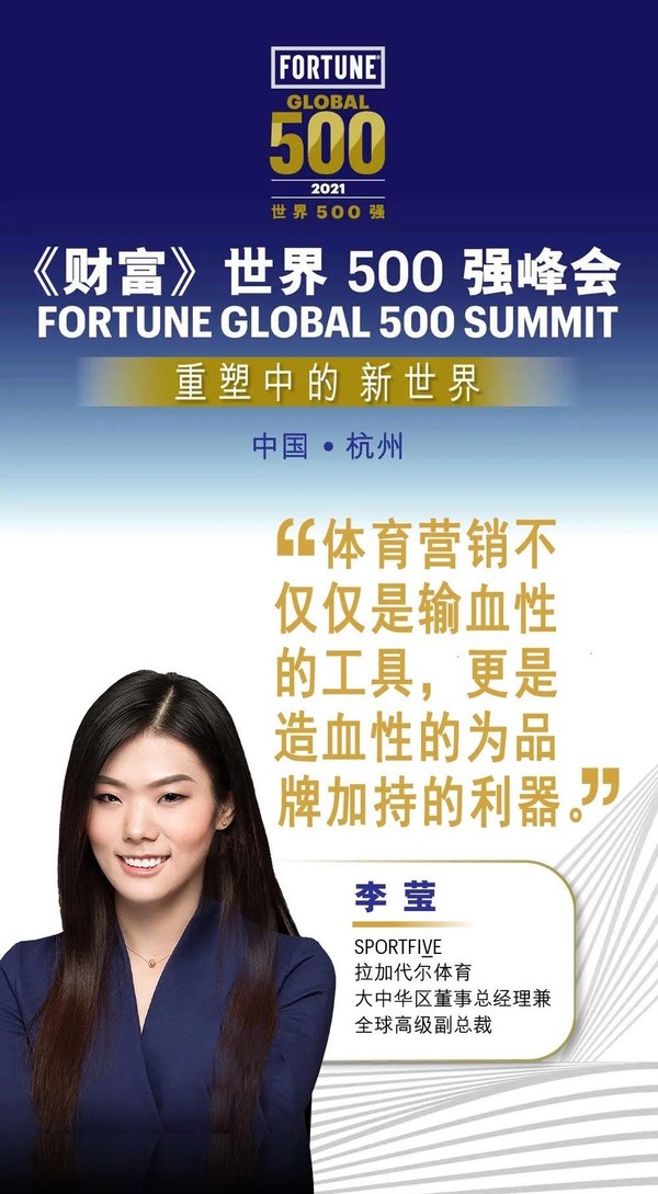 体育是跨性别、跨年龄段、跨国界、跨民族最好的连接方式。在2021《财富》世界500强峰会的最后,回应论坛主题“中国体育如何更好地联结世界”时,李莹表示:“SPORTFIVE/拉加代尔体育的企业理念就是最好的回应:Sports Connect The World/用体育连接世界。对于企业,特别是《财富》世界500强企业,体育不仅仅是输血性工具,更是造血性的为品牌加持的利器。”