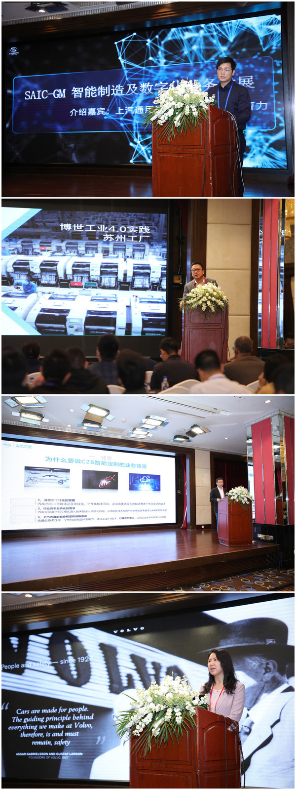 峰会第二天上午第一个分享上汽通用技术经理曹力基于丰富的现场经验分别就上汽通用的智能生产,智能维修,智能物流与智能质量进行详细的介绍。博世互联工业事业部总经理贾睿萌分享了博世数字化转型之路,介绍了博世在苏州/无锡两座灯塔工厂的情况。上汽大通汽车有限公司的制造在线运营高级经理孙钰栋带来了《上汽大通基于C2B智能定制的工业4.0灯塔工厂实践》的主题分享,介绍了基于C2B智能定制的柔性化生产的实际应用给企业带来的价值。Hitachi Vantara首席数据科学家Dr. Wei Lin以远程连线的方式介绍了如何用AI分析海量的工业数据。