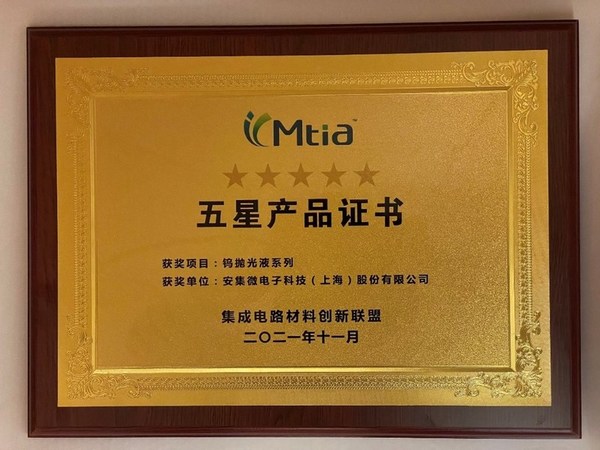 作为业内领军企业,安集科技致力于集成电路抛光液和功能性湿电子化学品技术,着力创新,为推动中国半导体材料创新及产业化做出卓越贡献。28nm技术节点后段硬掩模铜大马士革工艺刻蚀后清洗液技术取得突破性进展,并已在重要客户上线稳定使用,实现该类产品在28nm技术节点的进口替代,品质性能达到国际领先水平,荣获“技术攻关奖”;钨抛光液系列、先进封装用光刻胶去除剂分别在集成电路制造及先进封装领域获得广泛应用,荣获“五星产品奖”。
