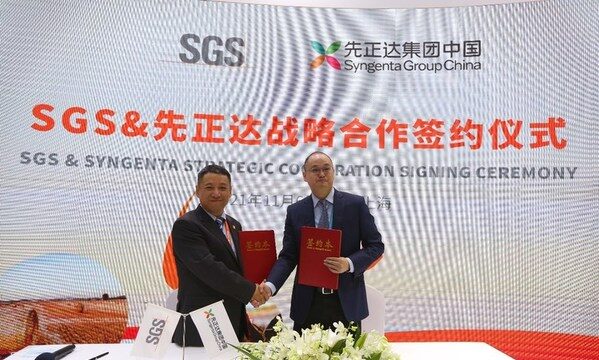 上海2021年11月6日 /新闻稿网 - Xinwengao.com/ — 11月6日,SGS与先正达集团中国在第四届进博会签署战略合作协议。此次战略合作协议,是在双方自2017年以来的多年良好合作基础上,为了建立未来稳定全面的合作,达成“高共识、强联手”的一致愿景,进一步促进农产品行业可持续发展,为农业安全提供强有力的保障。