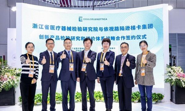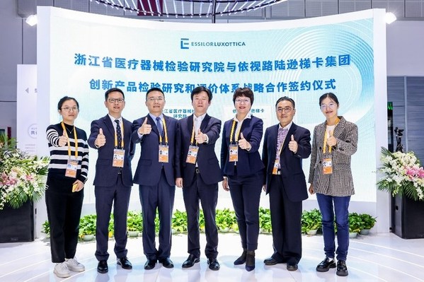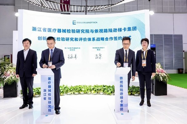 上海2021年11月8日 /新闻稿网 - Xinwengao.com/ — 今天,全球领先的视力保健和眼镜制造企业依视路陆逊梯卡集团与浙江省医疗器械检验研究院签署战略合作协议,共同推进眼视光测量仪器检验研究及评价体系的建立,从而加速眼视光领域创新测量仪器的研发与上市,惠及更多中国乃至全世界的视力不良患者。