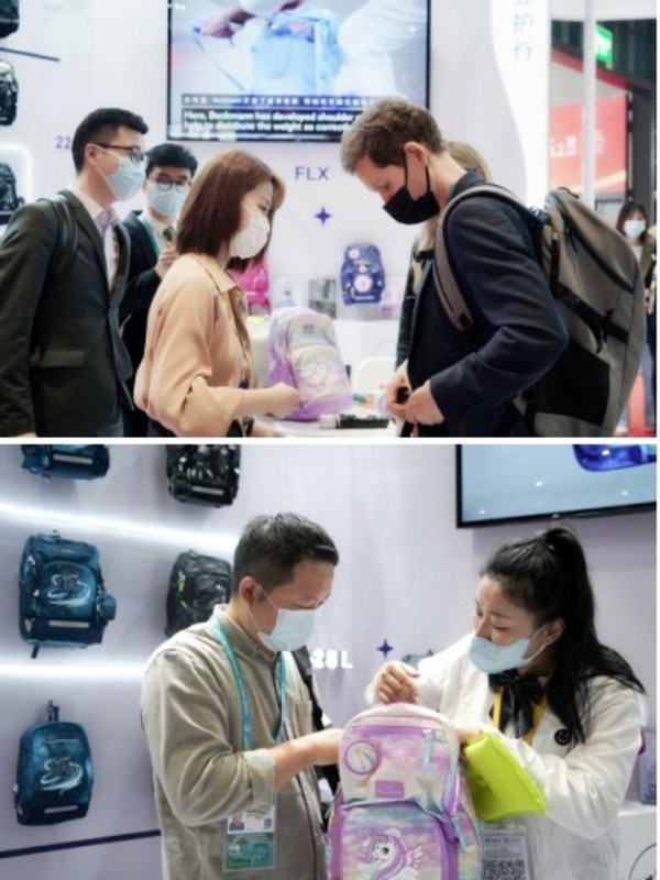 虽因疫情原因,Beckmann创始人家族没能亲自来到现场,但对此次进博首秀十分重视,全程参与了展台设计、选品、活动等细节。Beckmann在现场展出了自幼儿园、小学到初高中等全年龄段适用的多款书包,并配合身高指示,匹配更精准、更专业的书包购买建议;有奖问答、试背体验等互动环节丰富多彩,让消费者亲身感受“减压黑科技”书包的魅力。