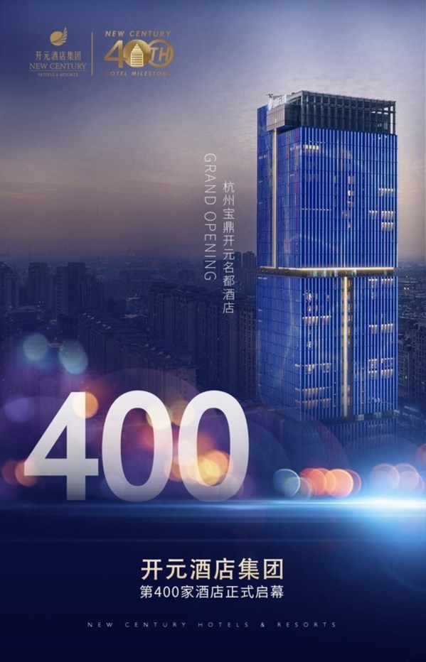 杭州2021年11月8日 /新闻稿网 - Xinwengao.com/ — 今日,开元酒店集团旗下第400家酒店 — 杭州宝鼎开元名都酒店盛大开业,迎来高端酒店发展又一重要里程碑。