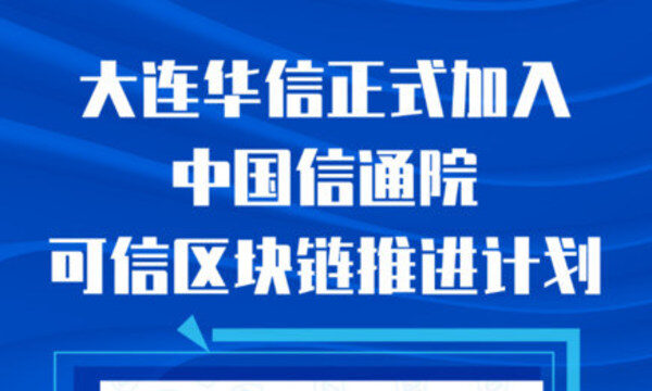 大连2021年11月12日 /新闻稿网 - Xinwengao.com/ — 近日,大连华信正式加入中国信通院“可信区块链推进计划”,成为理事成员单位。由大连华信自主研发的D-BaaS区块链服务平台体系,为行业提供可信区块链基础设施,推动区块链技术产业实践,用技术创造信任,让信任创造价值。