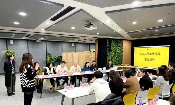 参访之后,双方回归跨界合作的深入交流。东呈集团加盟服务中心负责人荣丹女士、东呈会平台会员营销事业部负责人朱莹女士、东呈集团培训支持中心负责人齐晓光先生、东呈集团运营支持中心品质标准部负责人马钰涵女士、以及第三方合作金融平台大呈金服业务发展总经理罗旭女士作为主要代表,与樊登读书副总裁安贞灿先生、樊登读书创新业务负责人王泽西先生、樊登读书雨知教育负责人缑玉洁女士等人进行了交流。