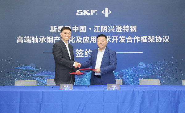 上海2021年11月15日 /新闻稿网 - Xinwengao.com/ — 近日,斯凯孚中国和江阴兴澄特种钢铁有限公司(以下简称“江阴兴澄特钢”)在上海共同签署“高端轴承钢产业化及应用技术开发合作框架协议”。双方将从绿色钢铁、高端轴承钢标准制定、钢材产业化研究、轴承钢应用研究等领域展开深度合作。