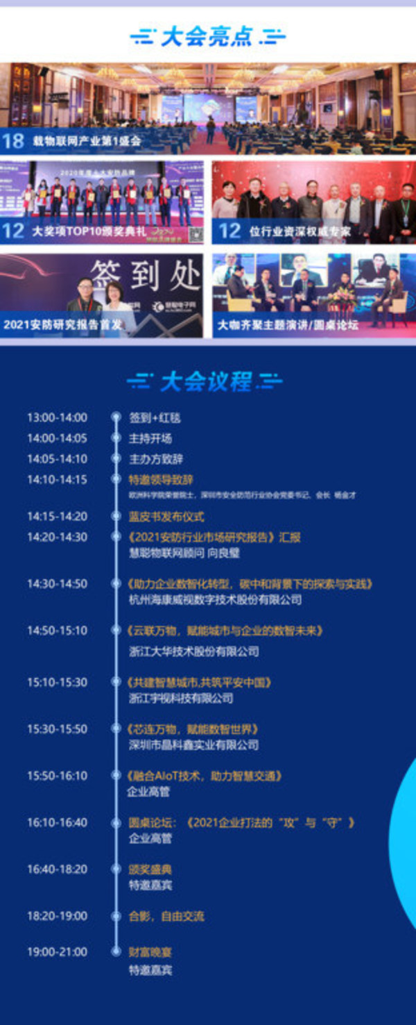 盛会现场,慧聪物联网将同期发布“最具价值年度行业研究报告 — 2021安防行业市场研究报告”。权威资深专家背书,纵览行业发展大势,为企业发展提供参考经验。