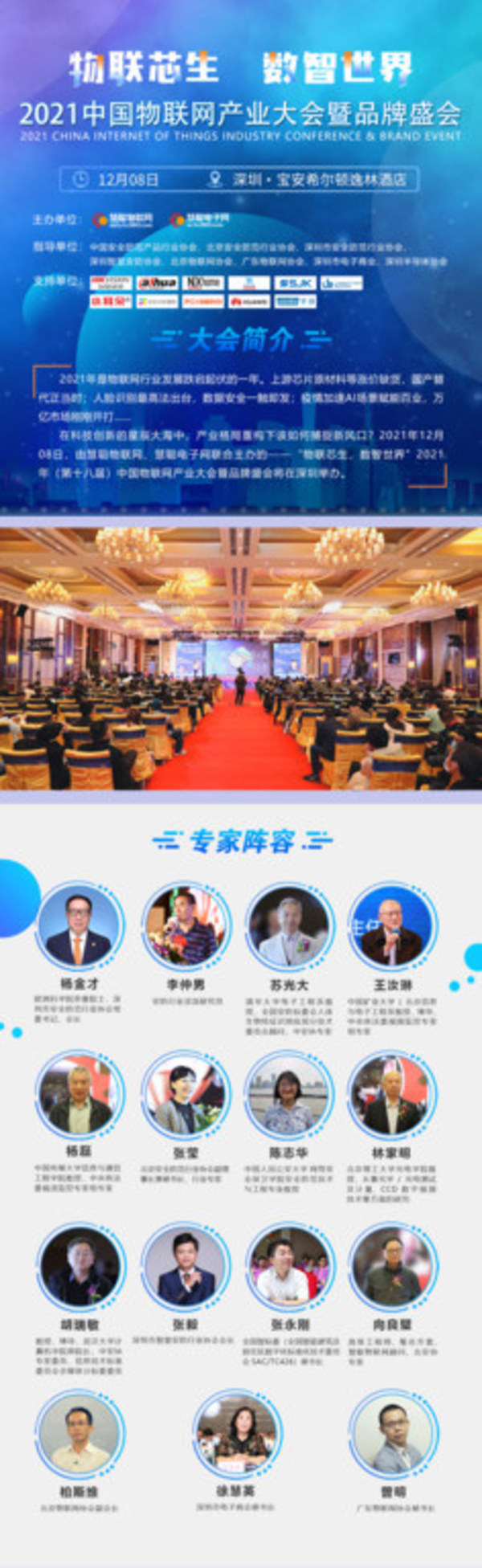 12月8日,慧聪物联网、慧聪电子网联合主办的2021年(第十八届)中国物联网产业大会暨品牌盛会将在深圳宝安希尔顿逸林酒店举行。