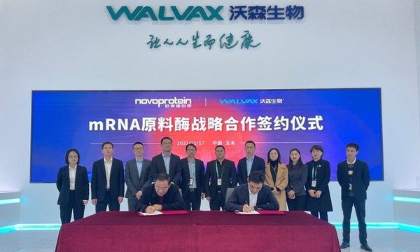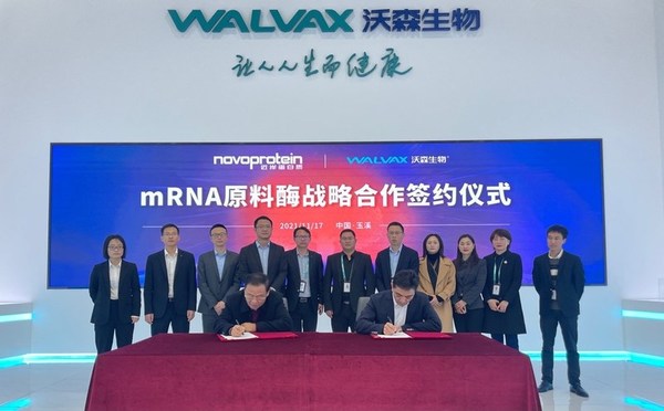 云南玉溪2021年11月18日 /新闻稿网 - Xinwengao.com/ — 2021年11月17日,苏州近岸蛋白质科技股份有限公司(以下简称“近岸蛋白质”)与云南沃森生物技术股份有限公司(以下简称“沃森生物”)的控股子公司玉溪沃森生物技术有限公司(以下简称“玉溪沃森”)在玉溪举行了战略合作签约仪式,双方就沃森生物mRNA疫苗项目原料酶的供应达成深度战略合作。未来,近岸蛋白质将积极推进上游原料供应链建设,为沃森生物的国内首个 mRNA疫苗实现产业化奠定坚固的基础。
