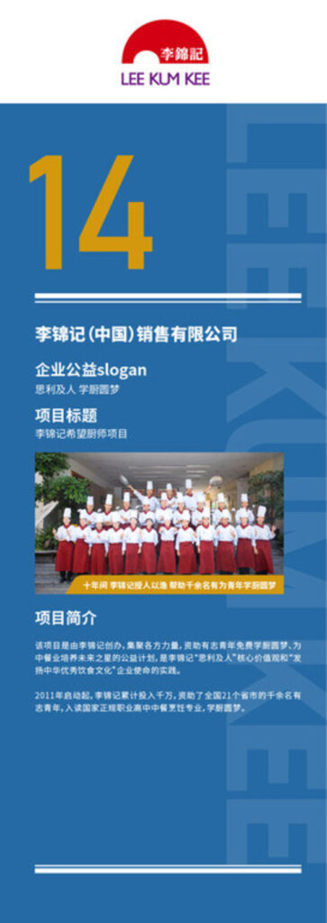 此前,由中国外商投资企业协会与中国扶贫基金会共同搭建了“外企扶贫行动”交流平台,联合清华大学公共管理学院开展外资企业扶贫项目研究。今年5月,为更好地总结外资企业扶贫经验,向更多社会力量参与乡村振兴提供借鉴思路,该平台发起2016-2020年外企扶贫案例征集活动,精选外企优秀扶贫案例在此次慈展会期间向社会展示。“李锦记希望厨师”项目凭借良好的链接脱贫攻坚与乡村振兴的能力,入选45强。
