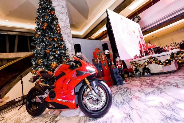 随着圣诞音乐节奏渐进,亮点活动高潮来临。神秘圣诞老人驾驶红色杜卡迪跑车炫酷登场,绕行酒店大堂惊艳现场来宾,大人和孩子们目光为这惊喜亮相吸引并深受震撼。在倒数计时中,酒店总经理比尔·费舍尔先生与圣诞老人共同启动引擎,在摩托引擎轰鸣声中圣诞树被瞬间点亮。