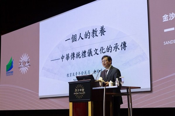 仪式结束后紧接举行“金沙中国亲职培训课程系列 – 一个人的教养”讲座,由老柏生首次亲身向综合度假村企业团队成员主讲,旨在让参与者从家长的角度了解到行为举止、言语辞令、现代礼仪、网络素养等对孩子成长的影响。