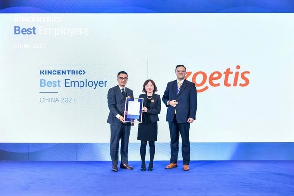 上海2021年12月2日 /新闻稿网 - Xinwengao.com/ — 全球领先高管寻聘公司Spencer Stuart旗下的Kincentric揭晓了“2021年中国最佳雇主榜单”,经过多轮调研、访谈、评分及审核,硕腾中国从众多跨国企业中脱颖而出,再度获得Kincentric最佳雇主认证,并获得最佳实践奖——最佳雇主“组织敏捷奖”。硕腾大中华区总经理王庆先生、人力资源负责人杨燕女士与几位员工代表受邀出席了颁奖典礼。